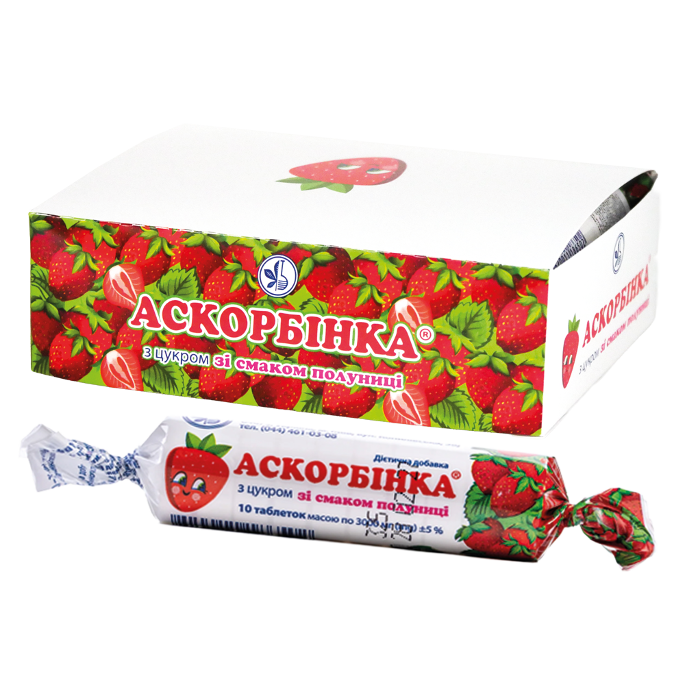 Askorbinsyra med jordgubbssmak, 10 tabletter ā 25 mg